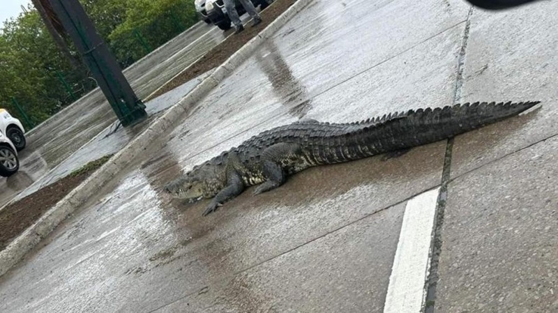 TAMPICO, TAMPS. En atención a un reporte del Grupo SOS Cocodrilo del municipio de Tampico, personal de la Guardia Estatal acudió al Boulevard Fidel Velázquez para resguardar el área ante el avistamiento de un reptil, esto debido a las fuertes lluvias registradas con el paso de la tormenta tropical «Alberto».