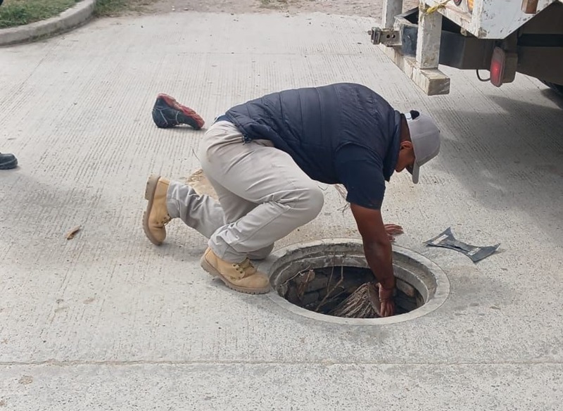 De igual manera, cuadrillas de trabajadores de este organismo efectuaron la reposición de tapa y limpieza de desechos en un pozo de visita en calle Cuarta esquina con Andador de los Santos, de la colonia Santo Tomás.