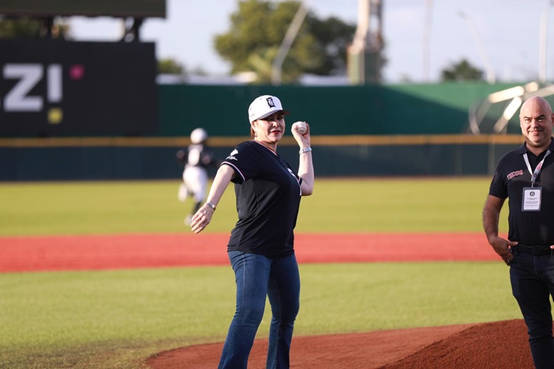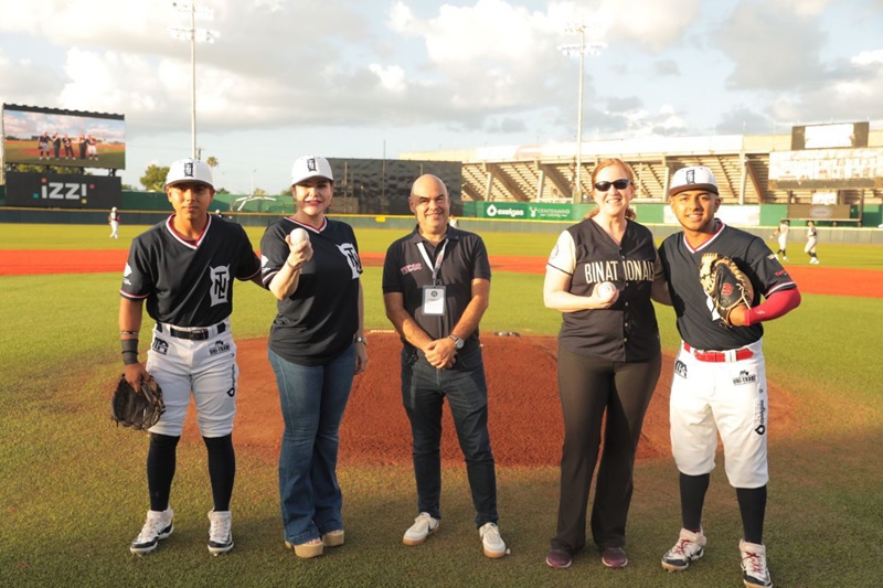 Posteriormente, la alcaldesa Carmen Lilia Canturosas Villarreal puso en juego la pelota con el primer lanzamiento y así, con casa llena, dar inicio al juego de los tecos contra Sultanes, duelo que reflejó la pasión de los neolaredenses por el rey de los deportes y el amor que sienten por pertenecer a la ciudad fronteriza.