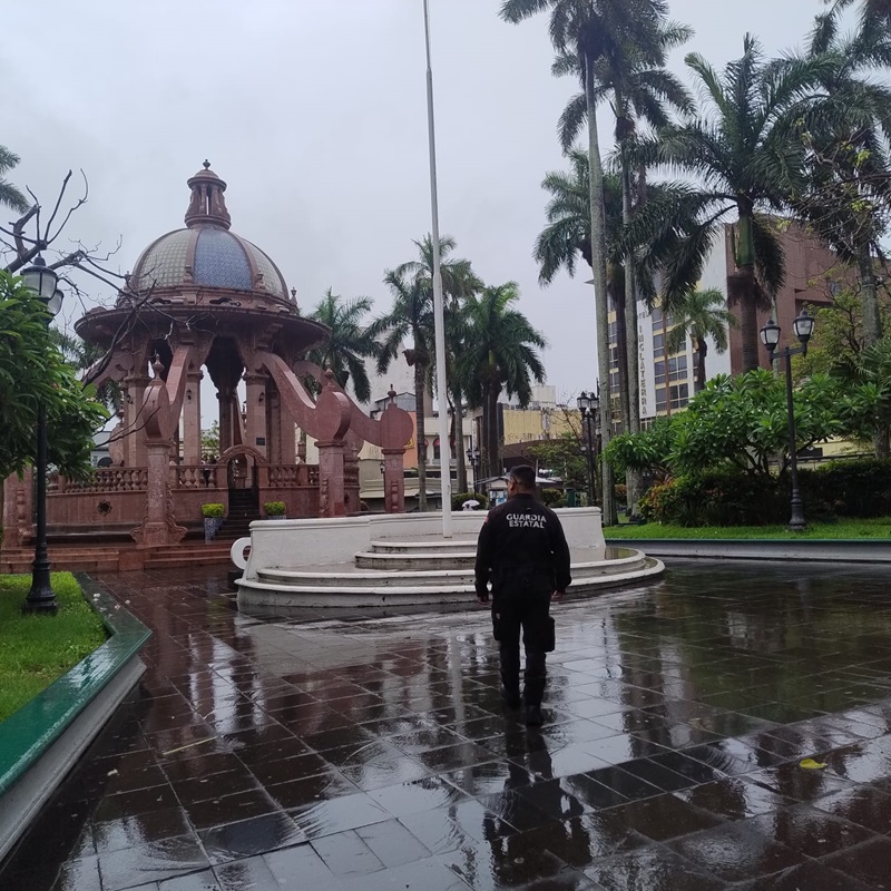 Entre estas acciones preventivas, el personal de la Guardia Estatal realiza recorridos de seguridad y vigilancia en las plazas de Armas, de la Libertad e Hijas de Tampico, sitios frecuentemente visitados por turistas y residentes.