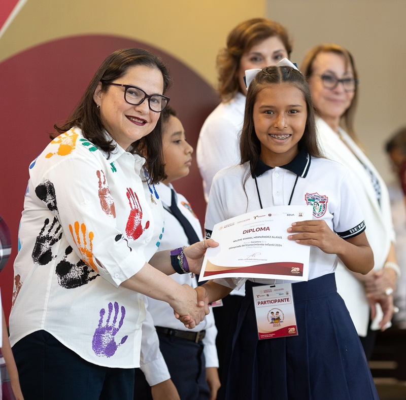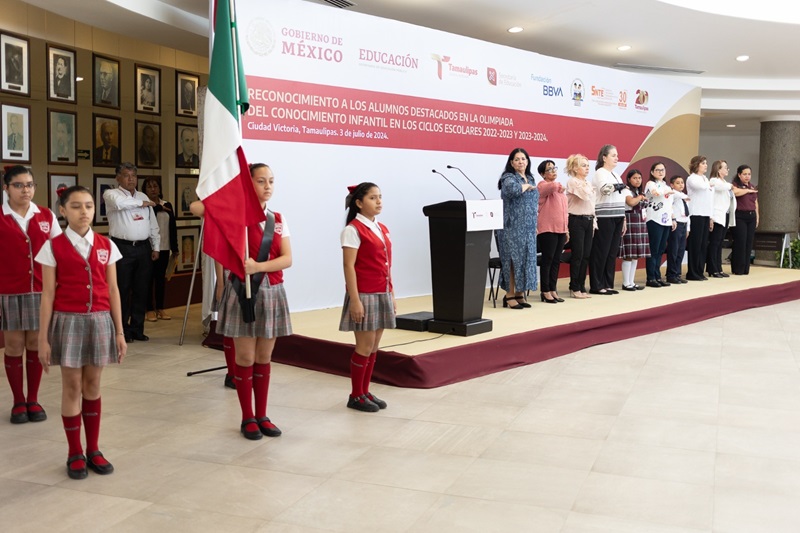 CIUDAD VICTORIA, TAMPS. Las y los estudiantes tamaulipecos de sexto grado más destacados, así como sus maestras y maestros, fueron reconocidos por obtener los mejores resultados en la Evaluación Estatal ‘Tamaulipas Aprende’ durante los ciclos escolares 2022-2023 y 2023-2024, esto dentro del marco de la Olimpiada del Conocimiento Infantil.