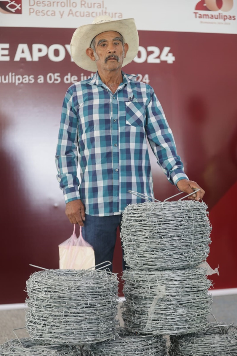 CIUDAD VICTORIA, TAMPS. A través del programa de Atención Ciudadana, el secretario de Desarrollo Rural, Pesca y Acuacultura, Antonio Varela Flores, entregó 117 rollos de alambre de púas a productores rurales de los municipios de Casas, Jaumave, Tula y Victoria, destacando que se continuará trabajando junto a los pequeños productores, al ser el sector más necesitado.