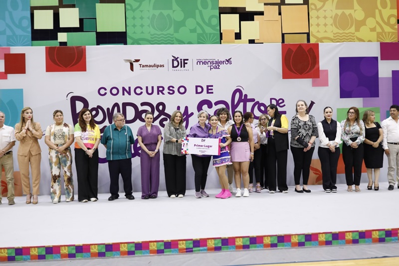 CIUDAD VICTORIA, TAMPS. Con la firme voluntad de rescatar las tradiciones y fortalecer la unión familiar, el Sistema DIF Tamaulipas que preside la doctora María de Villarreal, llevó a cabo el Concurso Estatal de Rondas Infantiles y Salto de Cuerda “La tradición nos une”, en el gimnasio multidisciplinario de la Universidad Autónoma de Tamaulipas en esta ciudad.