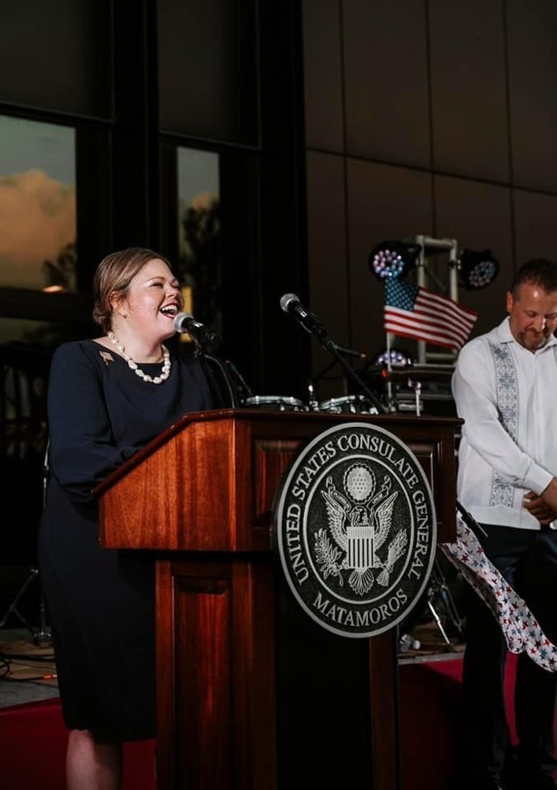 MATAMOROS, TAMPS. La cónsul general de Estados Unidos en Matamoros, Brianna Powers destacó la colaboración con el Instituto Tamaulipeco para los Migrantes para expedir pasaportes americanos a niños, niñas y adolescentes nacidos en Estados Unidos de padres tamaulipecos que residen en Tamaulipas, a través de las ferias del pasaporte americano, durante el evento de celebración del 248º aniversario de la independencia de Estados Unidos.