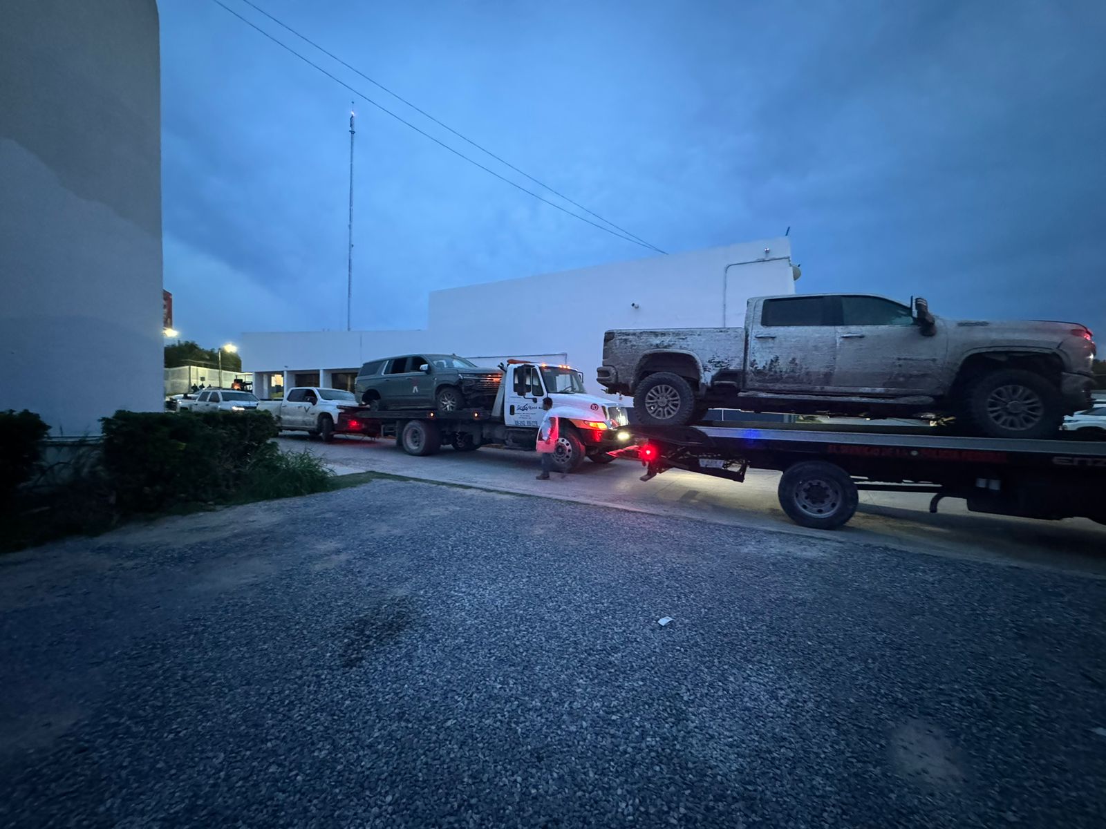 MATAMOROS, TAMPS. Un fuerte operativo en el que participaron grupos de fuerza de tarea de la Guardia Estatal de Tamaulipas, logró la ubicación y aseguramiento de 7 unidades «mounstro» así como armas y equipo táctico.