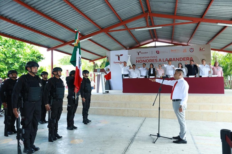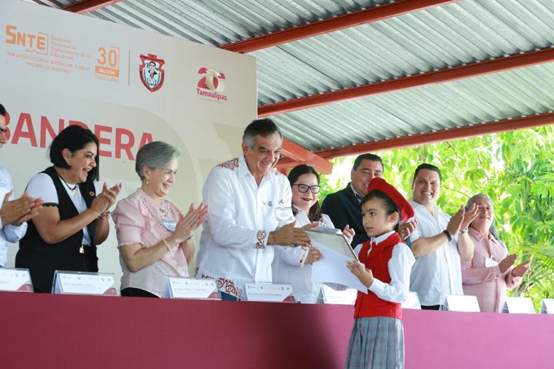 Al apadrinar junto con la presidenta del DIF Estatal, la doctora María de Villarreal, a la generación 2018-2024 de la escuela primaria «Norberto Treviño Zapata» en el ejido Segunda Unidad del municipio de Xicoténcatl y acompañado por los titulares de los Poderes Legislativo y Judicial, la diputada Úrsula Salazar Mojica y el magistrado David Cerda Zúñiga, quienes asistieron juntos, por primera vez, a esta comunidad, el gobernador del Estado reiteró su compromiso de seguir impulsando un programa de becas que apoye a todos los que quieran continuar preparándose.