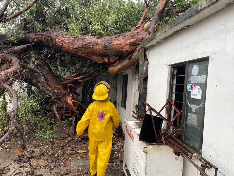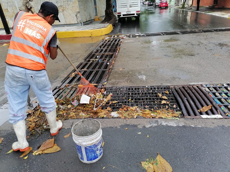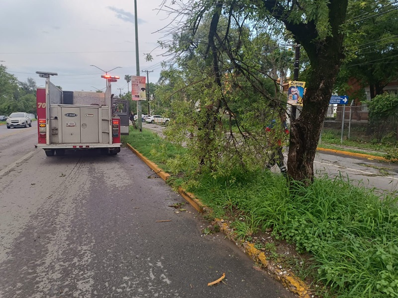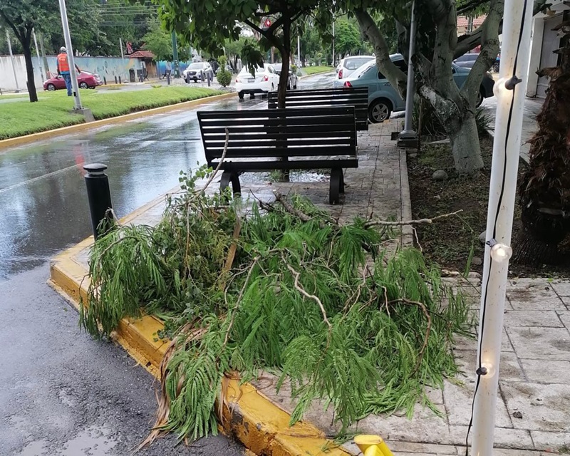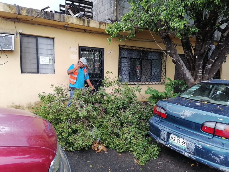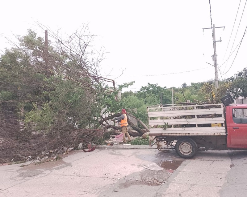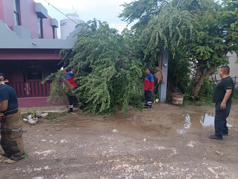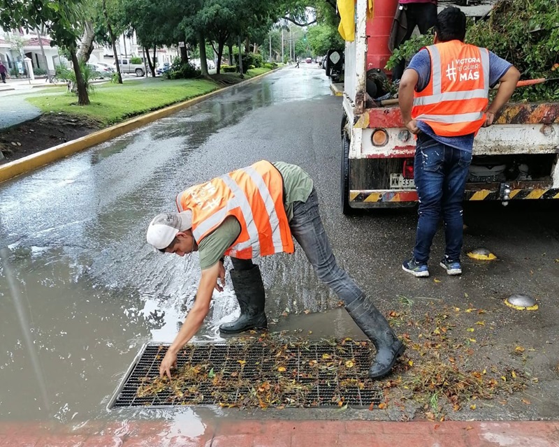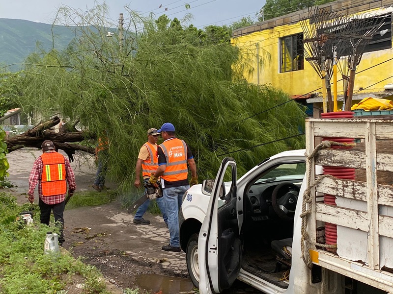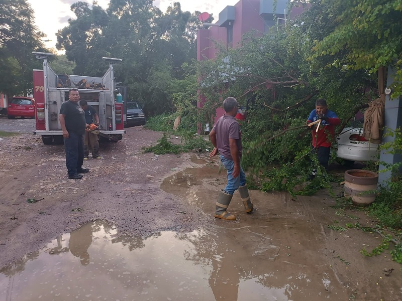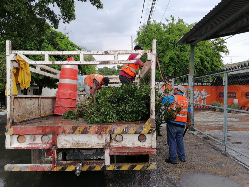 En equipo, cuadrillas de Parques y Jardines y Bomberos procedieron al retiro de ramas y troncos en casas, calles, áreas verdes y rejillas de drenaje pluvial de las colonias Américo Villarreal, Tamatán, Amalia G. de Castillo y Altas Cumbres.