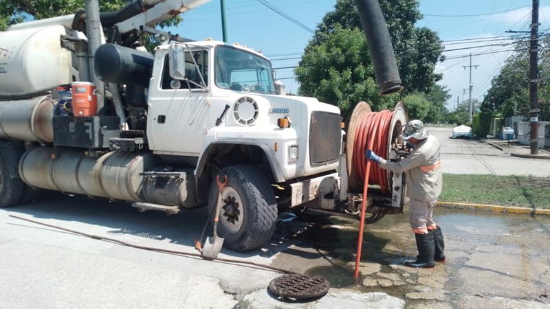 ALTAMIRA, TAMPS. Con la finalidad de optimizar el funcionamiento de la red hidrosanitaria, la Comisión Municipal de Agua Potable y Alcantarillado de Altamira, que dirige el Ing. Omar Hernández Leines, llevó a cabo acciones de sondeo en líneas generales de drenaje y limpieza de registros en diferentes colonias y sectores de esta ciudad.