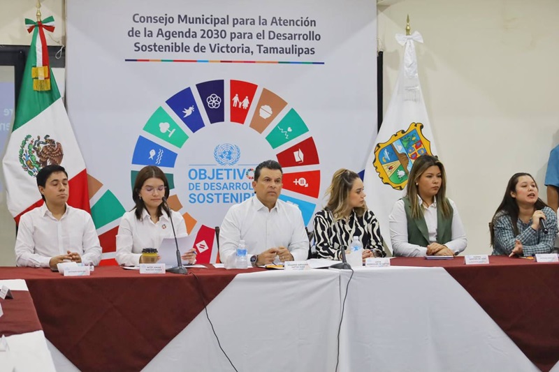 CIUDAD VICTORIA, TAMPS. Para alinear objetivos con la Agenda 2030 del Gobierno de Tamaulipas, el presidente municipal de Victoria Eduardo Gattás Báez presidió este miércoles la tercera sesión del Consejo Municipal para el Desarrollo Sostenible para abordar temas de agua limpia y saneamiento, acción por el clima y ciudad sostenible.