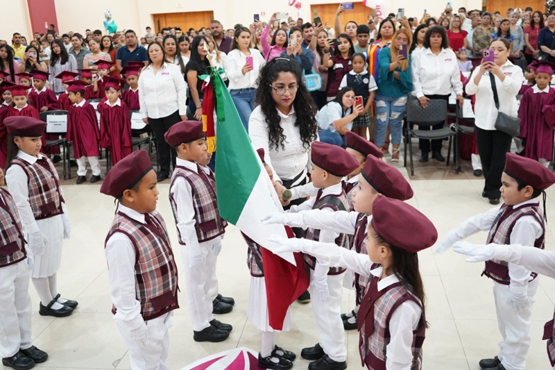 La presidenta del Sistema DIF Nuevo Laredo, Claudette Canturosas Villarreal, dirigió un mensaje a los pequeños estudiantes y sus familias, destacando la importancia de este logro en su desarrollo educativo y personal.