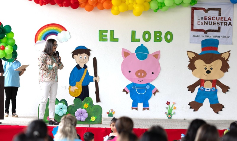 Durante la rendición de cuentas, estudiantes del plantel, protagonizaron la representación teatral “El Lobo Sentimental” como parte de las evidencias pedagógicas que muestran el desarrollo de habilidades adquiridas durante el ciclo escolar en el nivel de preescolar.