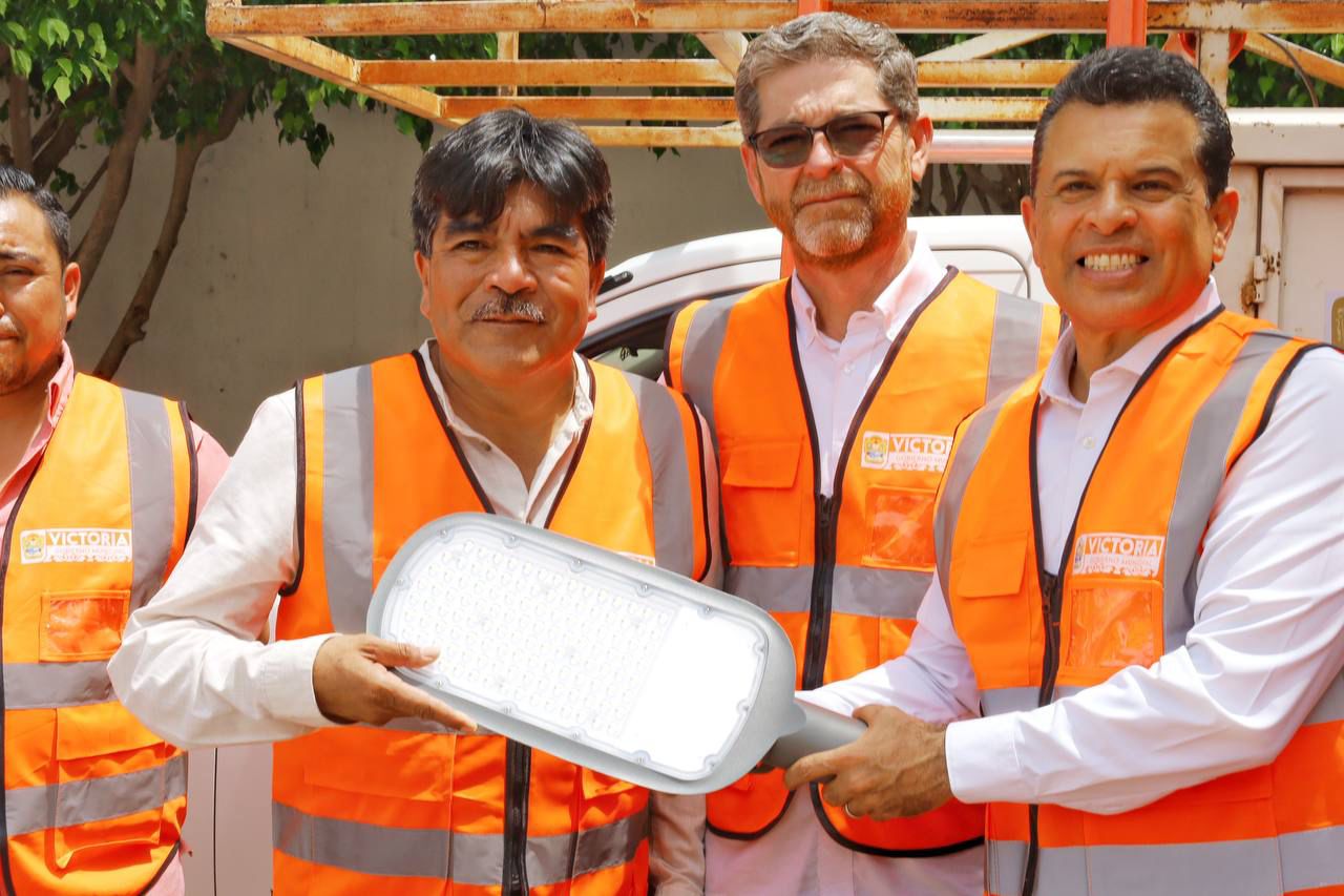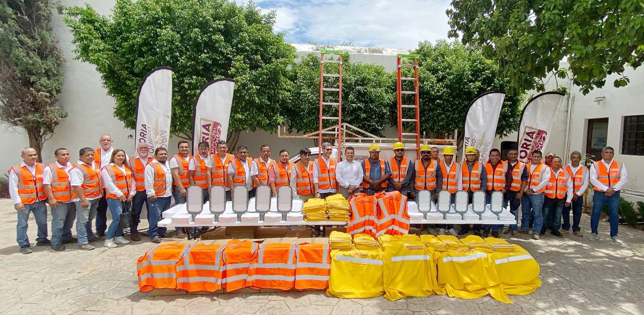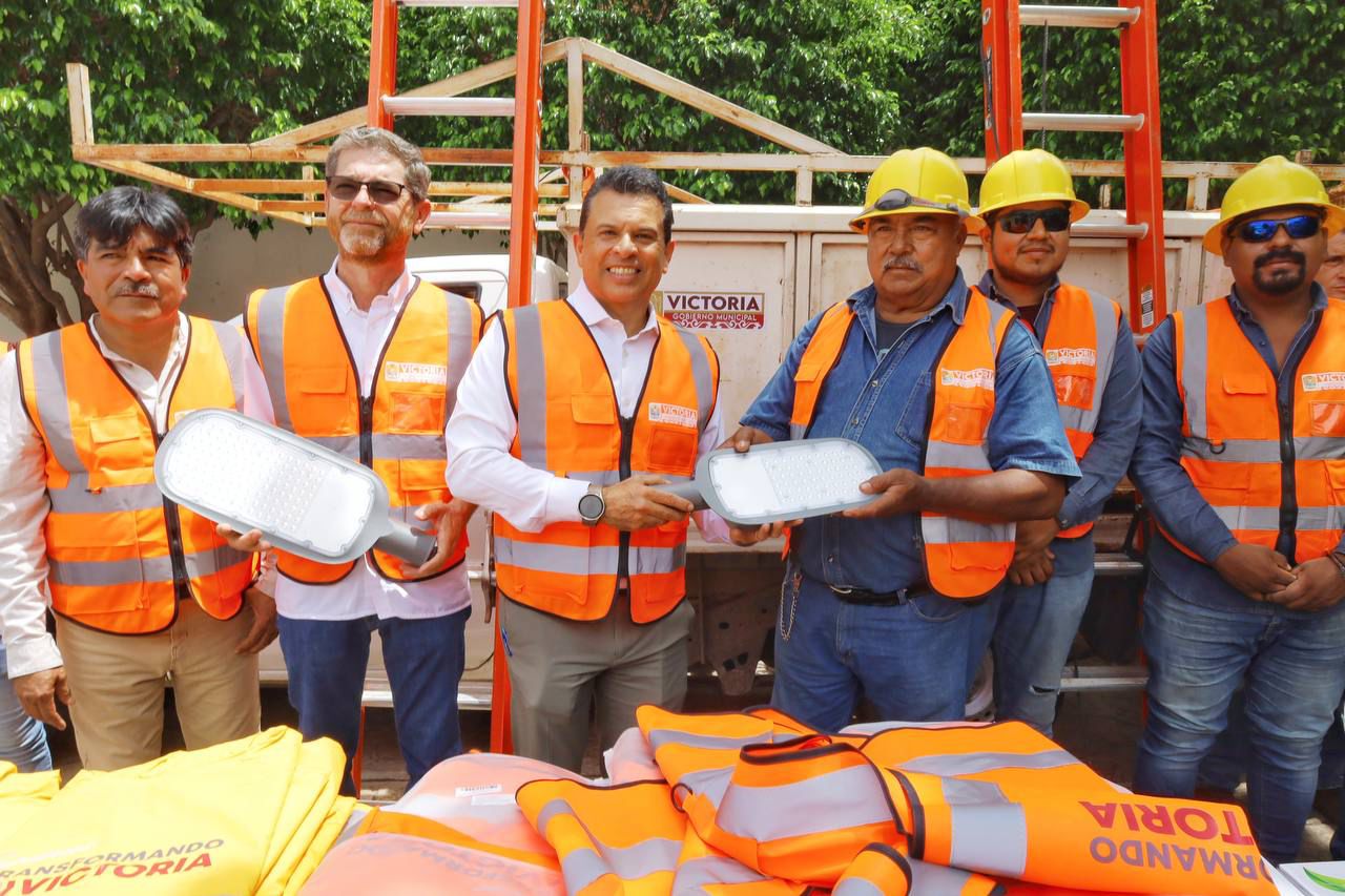 En el patio central de la presidencia municipal y con una inversión superior a un millón 700 mil pesos, el alcalde de Victoria entregó al personal del Departamento de Alumbrado Público 500 luminarias tipo LED, así como chalecos, impermeables y escaleras.