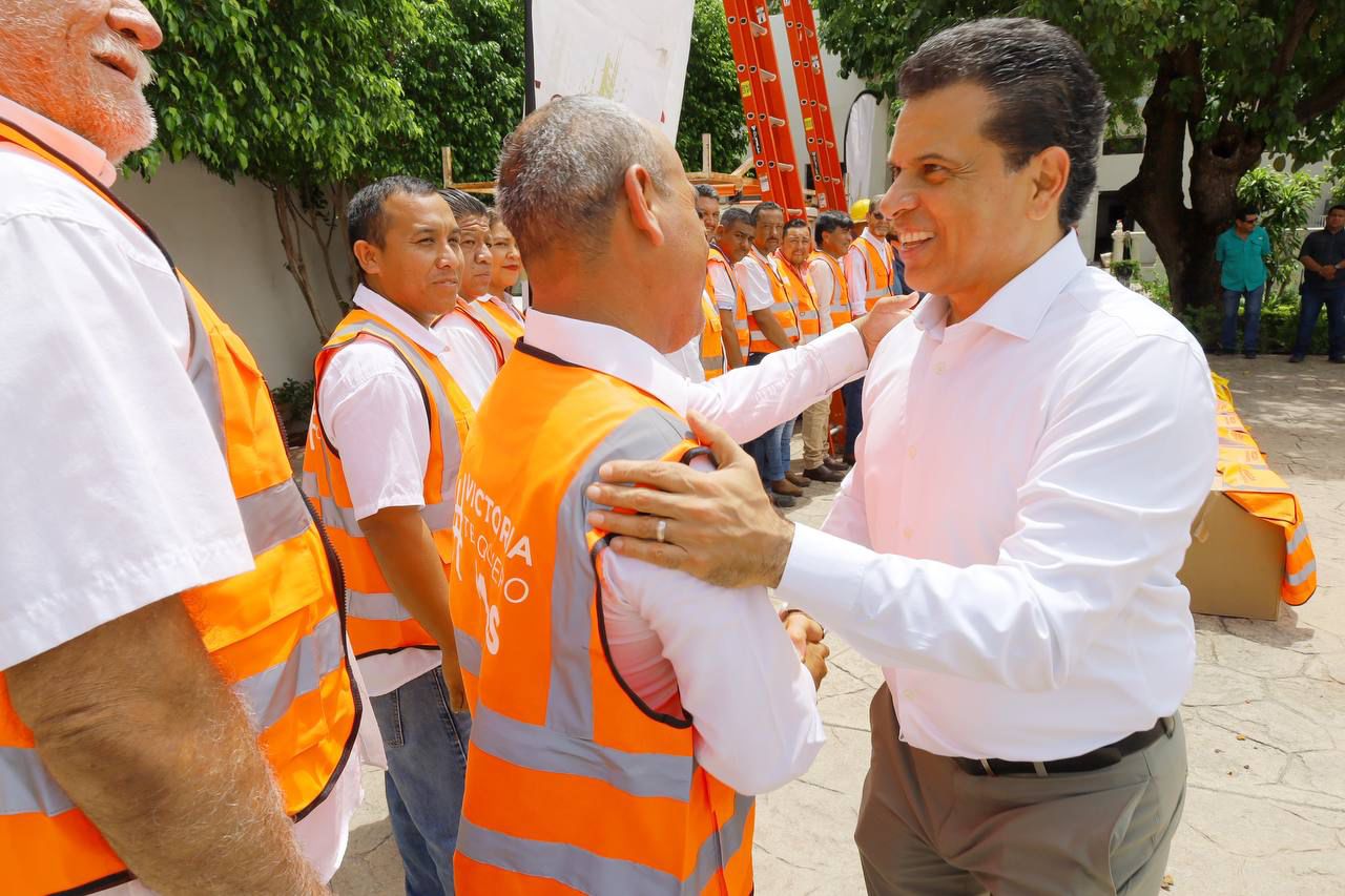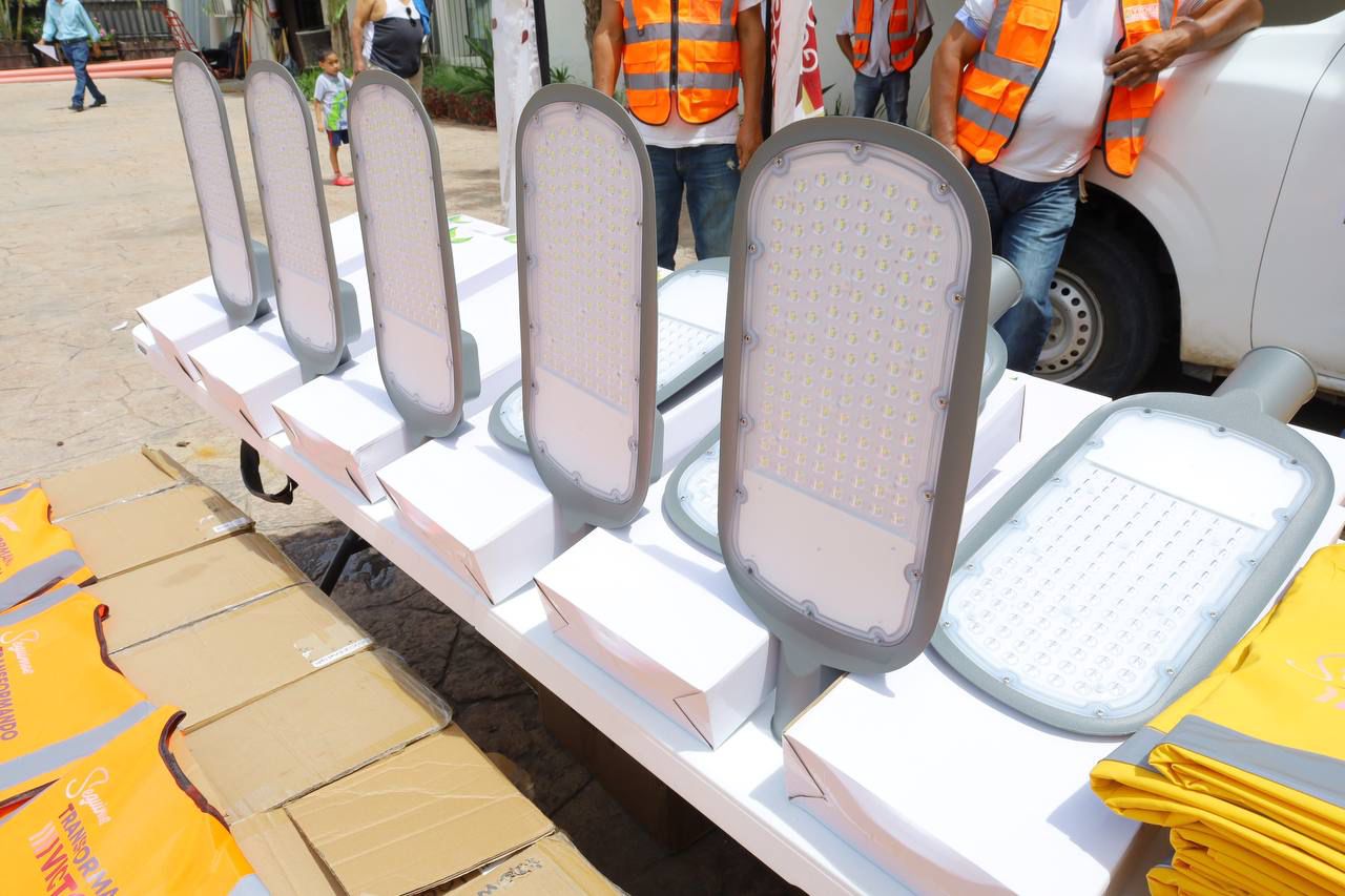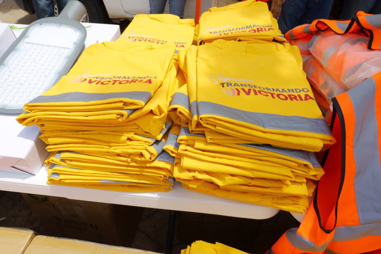 En el patio central de la presidencia municipal y con una inversión superior a un millón 700 mil pesos, el alcalde de Victoria entregó al personal del Departamento de Alumbrado Público 500 luminarias tipo LED, así como chalecos, impermeables y escaleras.
