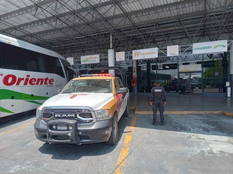 CIUDAD VICTORIA, TAMPS. Ante la proximidad del periodo vacacional verano 2024, personal de la Guardia Estatal mantiene la proximidad y vigilancia en los principales accesos de los municipios, entre ellos, las centrales de autobuses.