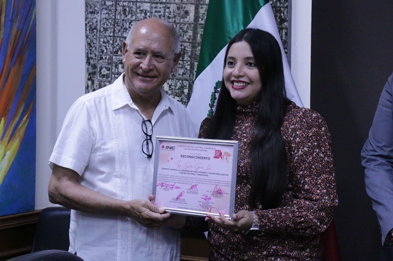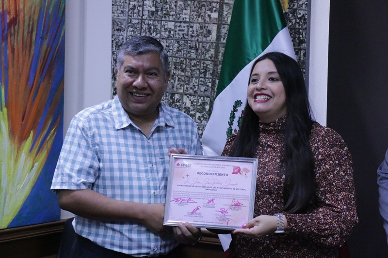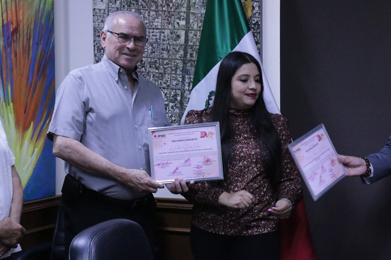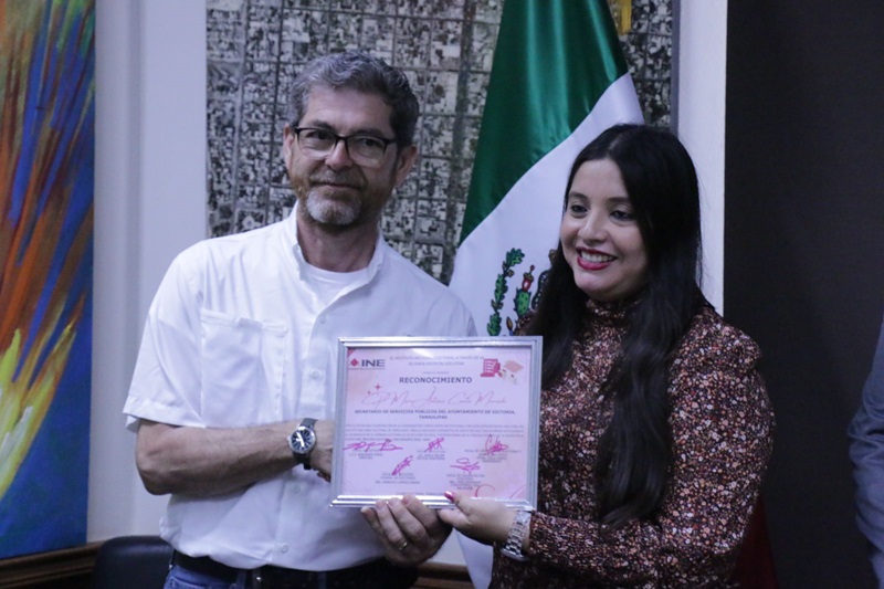 CIUDAD VICTORIA, TAMPS. Por el servicio y colaboración institucional en la jornada electoral del 2 de junio de 2024, el Gobierno de Victoria, que preside Eduardo Gattás Báez, recibió el reconocimiento del Instituto Nacional Electoral (INE) por coadyuvar con acciones de gobierno en el fortalecimiento de la democracia.