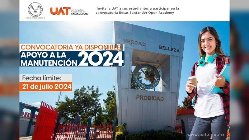 CIUDAD VICTORIA, TAMPS. La Universidad Autónoma de Tamaulipas (UAT) invita a su comunidad estudiantil a participar en la convocatoria de apoyo de manutención 2024, ofrecida por Santander Open Academy.