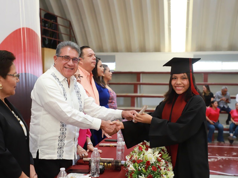 Como parte del protocolo, el munícipe acompañado de directivos y maestros de la preparatoria, hizo entrega de las constancias de fin de cursos a cada uno de los graduados, felicitándolos personalmente y motivándolos a seguir adelante con sus metas y sueños.