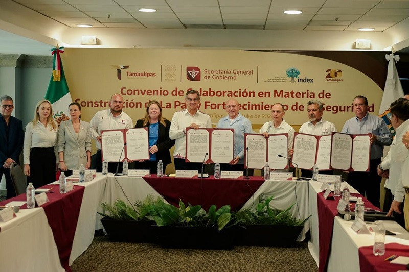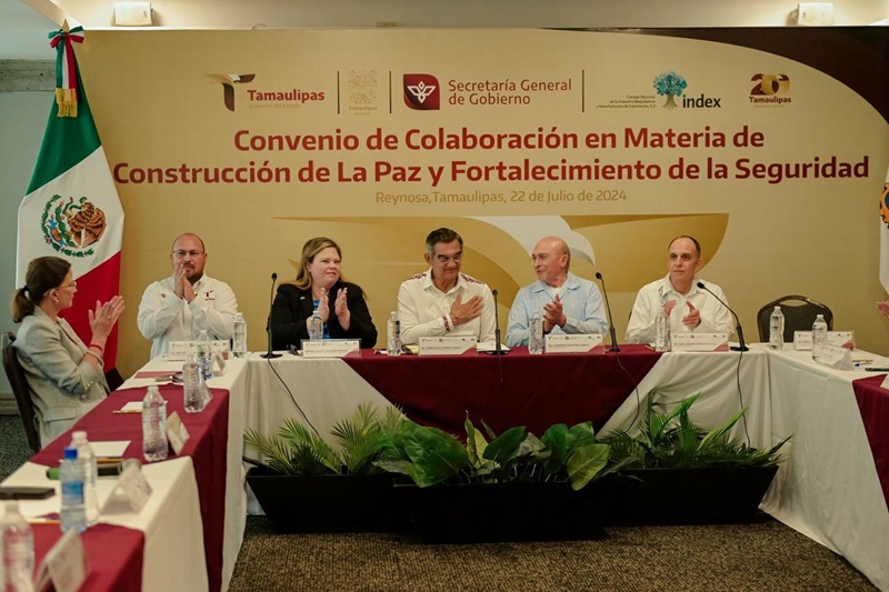 Previo a este evento, se realizó la firma del convenio de colaboración en materia de construcción de la paz y fortalecimiento de la seguridad, entre el Gobierno de Tamaulipas e INDEX.