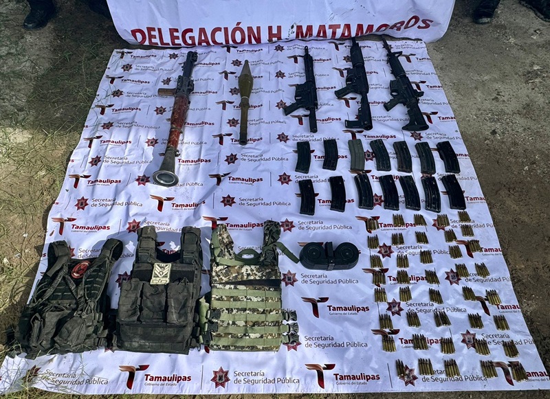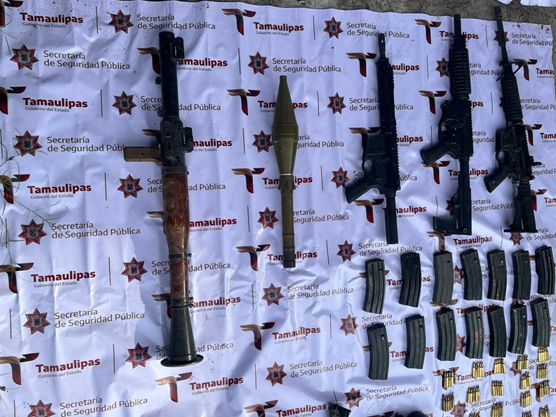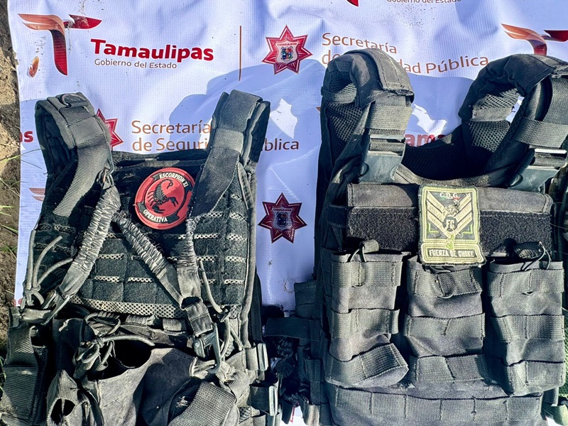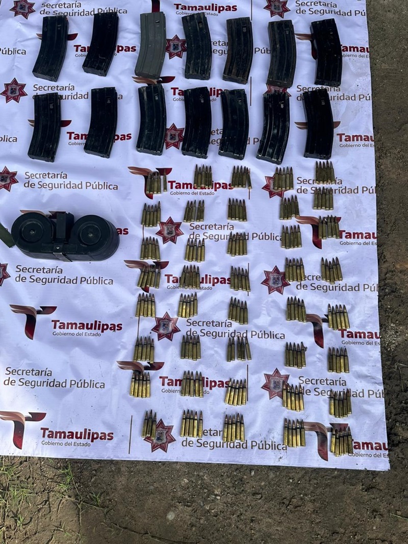 VALLE HERMOSO, TAMPS. Al realizar recorridos de seguridad y vigilancia en el ejido Aquiles Serdán del municipio de Valle Hermoso, personal de la Guardia Estatal localizó y aseguró armamento, equipo táctico y un vehículo con reporte de robo los cuales eran empleados en actividades relacionadas con el crimen organizado.