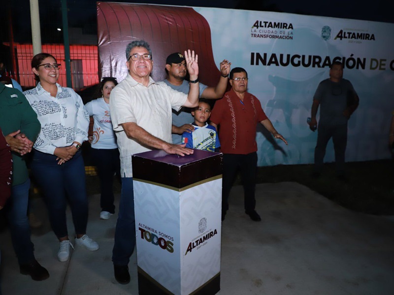 ALTAMIRA, TAMPS. El presidente municipal de Altamira, Dr. Armando Martínez Manríquez, llevó a cabo la inauguración de la rehabilitación del parque deportivo y recreativo «Los Panchos», ubicado en el fraccionamiento Alejandro Briones, sector Montealto, un anhelo desde hace muchos años por parte de los vecinos de la zona, pues se trata de una obra que no solo promoverá la unión familiar, sino también el deporte y el esparcimiento entre los colonos.