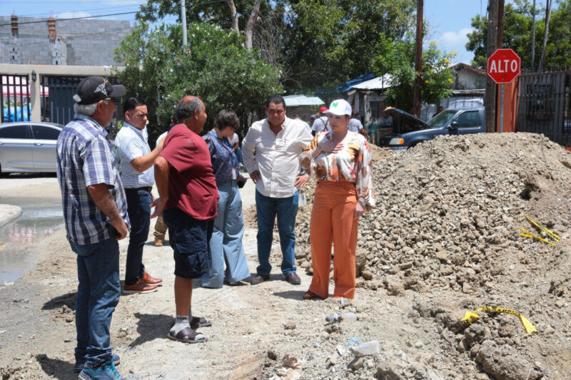 Durante el recorrido, la presidenta municipal acudió junto al secretario de Obras Públicas, Carlos De Anda Hernández y la gerente general de Comapa, Silvia Fernández a la reparación de cinco cuadras de líneas de drenaje sanitario en la colonia Matamoros.