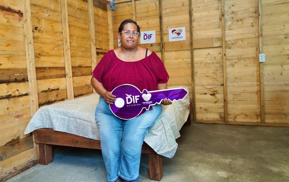ALTAMIRA, TAMPS. En un acto de amor y con el objetivo de mejorar su calidad de vida, la presidenta del Sistema DIF Altamira, C.P. Rossy Luque de Martínez, hizo la entrega oficial de una vivienda a la señora Olivia Rosales Sifuentes, quien solicitó el apoyo para contar con un techo en mejores condiciones.