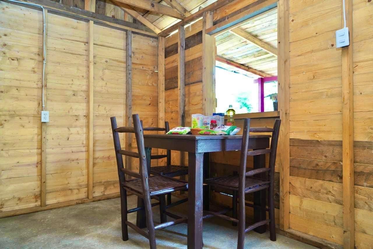 Esta nueva vivienda para la señora Olivia, ubicada en el Ejido José María Luis Mora (Margaritas), consiste en una casa de madera equipada con instalación eléctrica, comedor de madera, base de cama y colchón. Además de estas adecuaciones, se realizó reforestación con 06 árboles frutales alrededor de la vivienda, a petición de la beneficiaria.