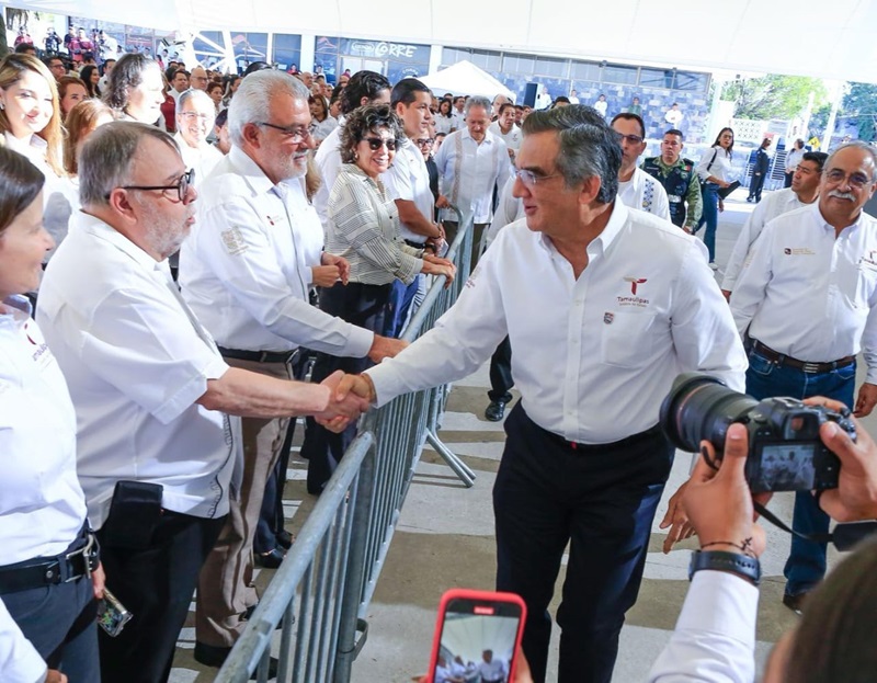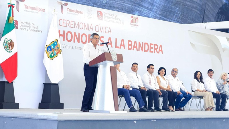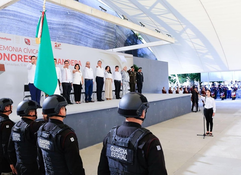 En esta ceremonia celebrada en el patinadero de la Unidad Deportiva Adolfo Ruiz Cortines, acompañaron al gobernador: la senadora electa, Olga Sosa Ruiz; el magistrado David Cerda Zúñiga, presidente del Supremo Tribunal de Justicia; la diputada Úrsula Salazar Mojica, presidenta de la Junta de Gobierno del Congreso del Estado; el diputado Humberto Prieto Herrera, presidente de la Diputación Permanente del Congreso; el rector de la Universidad Autónoma de Tamaulipas, Dámaso Anaya Alvarado; el presidente municipal de Victoria, Eduardo Gattás Báez; Adriana Lozano Rodríguez, secretaria de Finanzas; el general Julio César Islas Sánchez, comandante de la 48a Zona Militar; y, con la representación de la Guardia Nacional, el teniente Fernando Meneses Martínez.