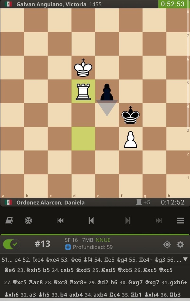 Daniela, quien se convirtió en la única representante de Tamaulipas en este prestigioso campeonato, demostró su habilidad y tenacidad en un tablero electrónico, donde sus partidas fueron seguidas en vivo por aficionados a través de internet.