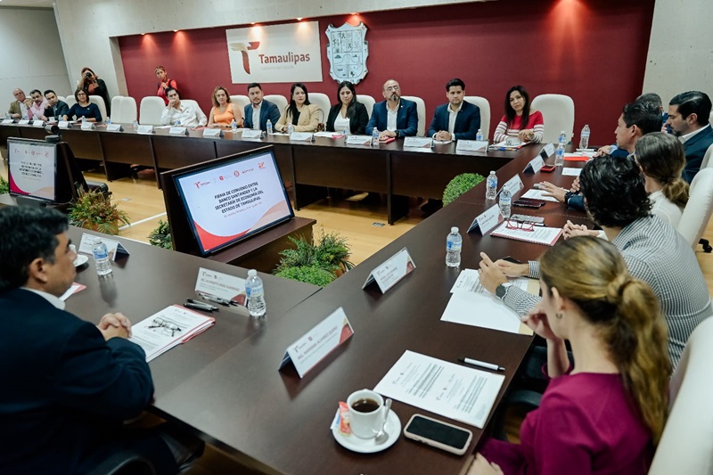 En la firma del convenio entre la Secretaría de Economía participaron Mariana Álvarez, subsecretaria para la Pequeña y Mediana empresa; Anabell Flores subsecretaria de Inversión; Sandra Mejía, directora general de Fondo Tamaulipas; Luis Eduardo Mendiola, director ejecutivo de Banca de Empresas e Instituciones; Jorge Ramos, director ejecutivo regional Banca de Particulares y PyMES y funcionarios de la institución en Tamaulipas.