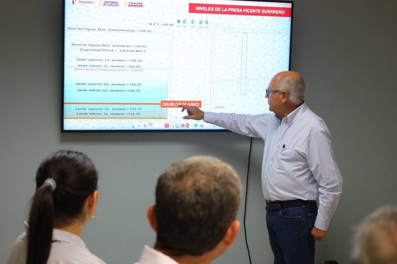 CIUDAD VICTORIA, TAMPS. El presidente municipal de Victoria presidió la Duodécima Primera Sesión Ordinaria de Consejo de Administración de COMAPA en la que se aprobó el avance financiero, plan de obras y actualización del programa de distribución de agua con la recuperación del 52.72% de almacenamiento de la presa Vicente Guerrero y pozos de la ciudad.
