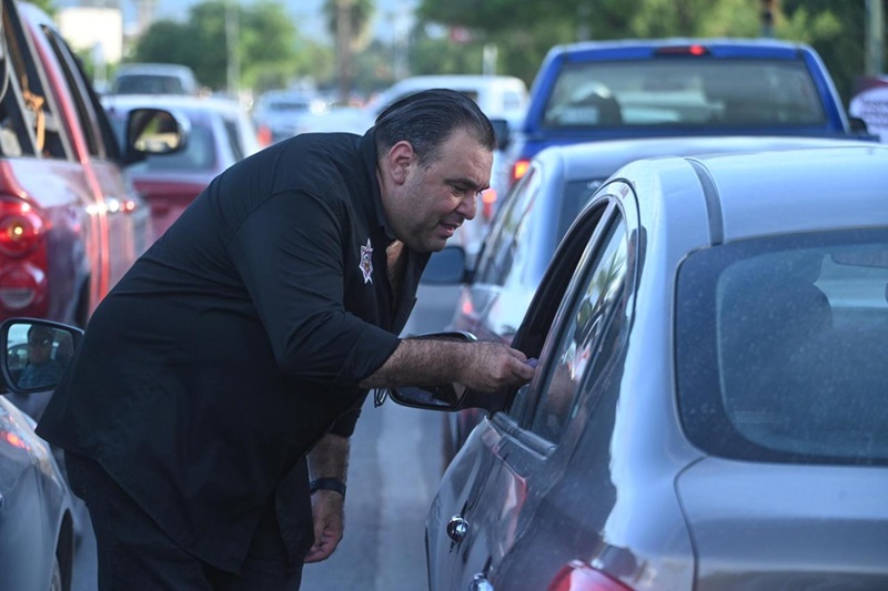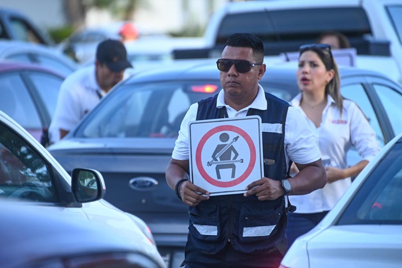 Livio Flores Rodríguez, titular de la dependencia, encabezó la estrategia junto al personal operativo y administrativo con la exhibición de carteles, entrega de trípticos y exhorto verbal a conductores que circularon por el cruce del boulevard Adolfo López Mateos con Avenida Tamaulipas.
