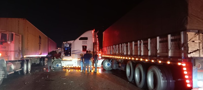 Este último refirió trabajar para la empresa Transportes Arandas y proceder de Barandas, Jalisco con destino a San Fernando, Tamaulipas, viajaba con un contenedor vacío cuando la humedad del pavimento ocasionó que resbalara y se impactara contra otro tractocamión en circulación.