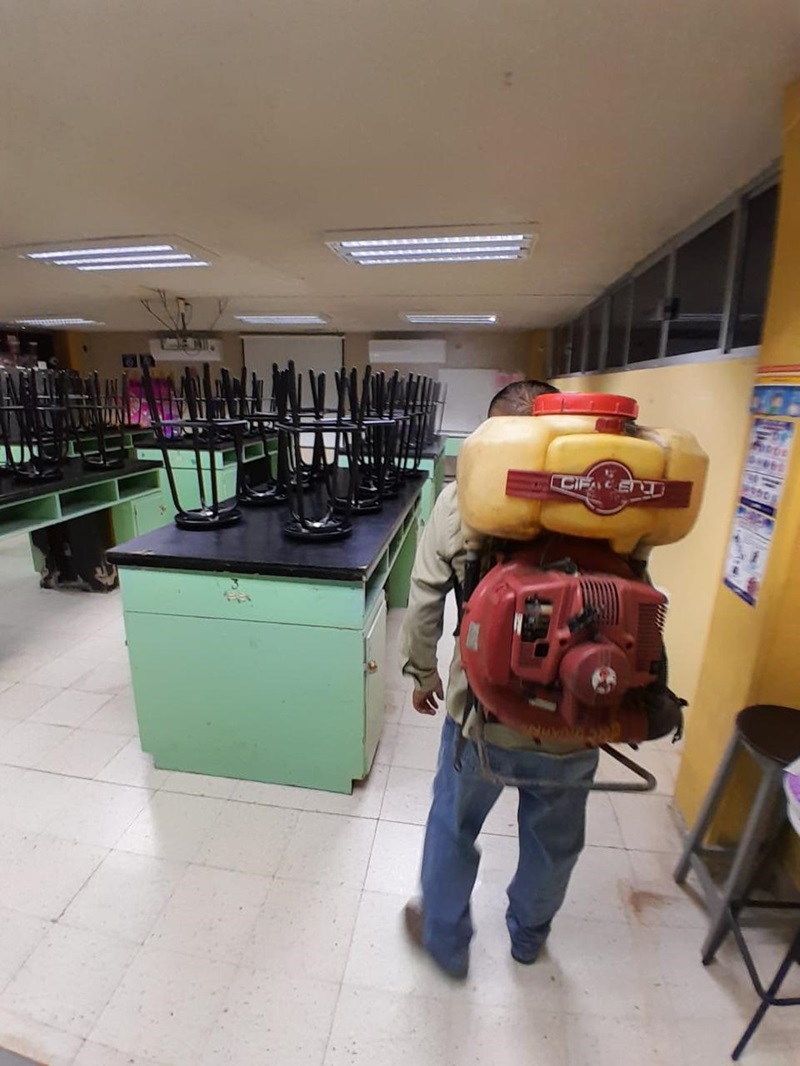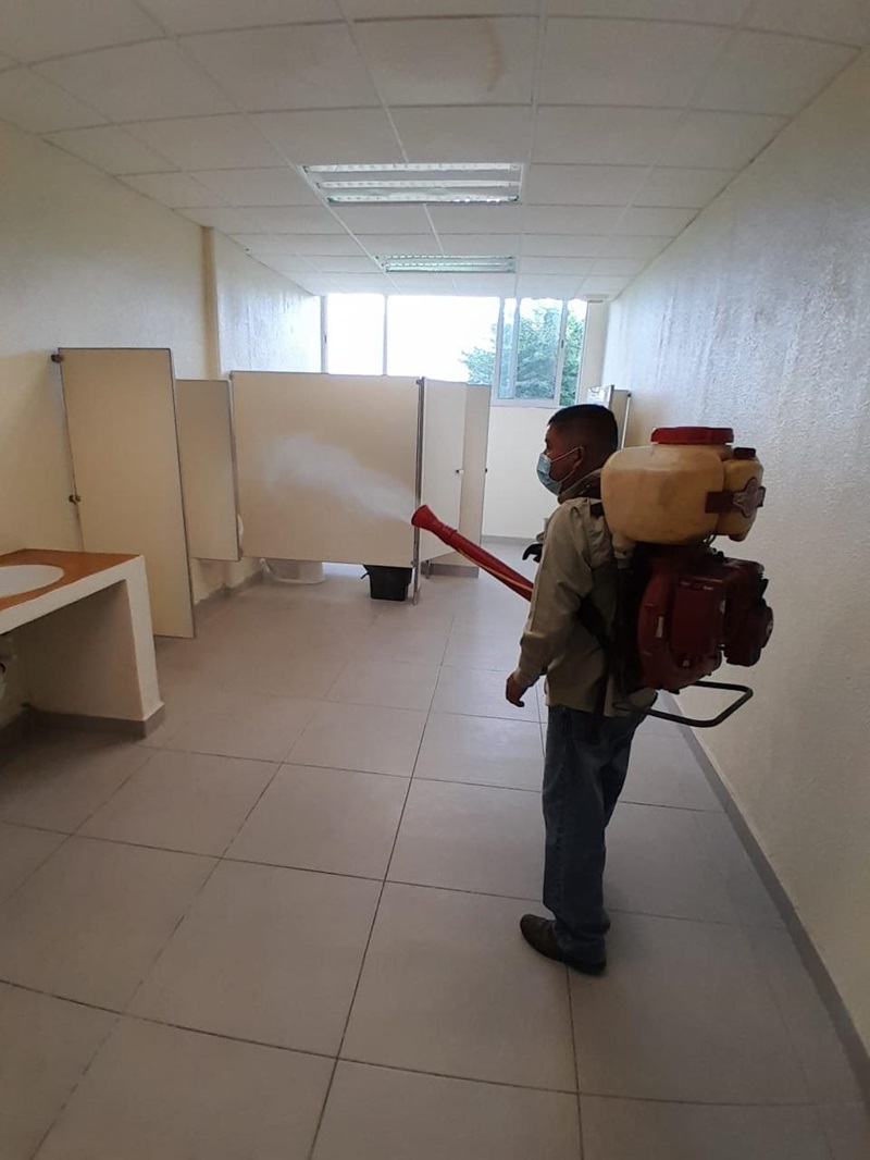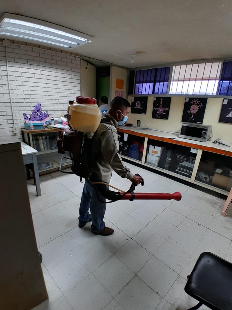 El proceso de fumigación se realizó mediante la coordinación del director de este plantel universitario, el Mtro. en Salud Pública Pedro Luis Mendoza Múzquiz, y la Jurisdicción Sanitaria Número III a cargo de la Dra. Gilma Dinhora Alcocer Cortez.