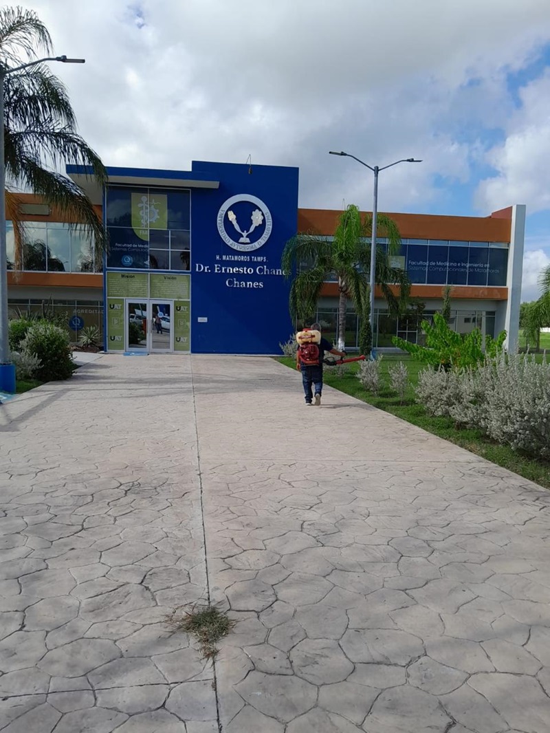 CIUDAD VICTORIA, TAMPS. Con el objetivo de garantizar un entorno seguro para el inicio del nuevo ciclo escolar otoño 2024, la Facultad de Medicina Matamoros de la Universidad Autónoma de Tamaulipas (UAT) ha llevado a cabo una fumigación integral en sus instalaciones, realizada por el Departamento de Vectores de la Jurisdicción Sanitaria III en Matamoros.