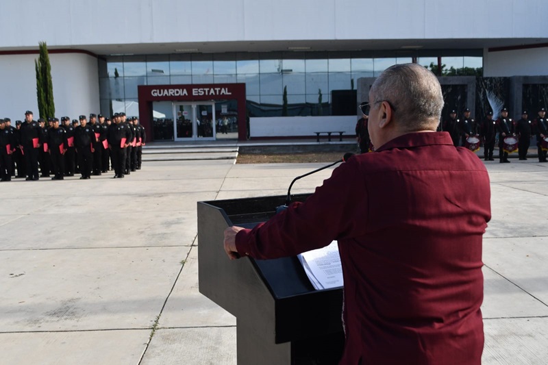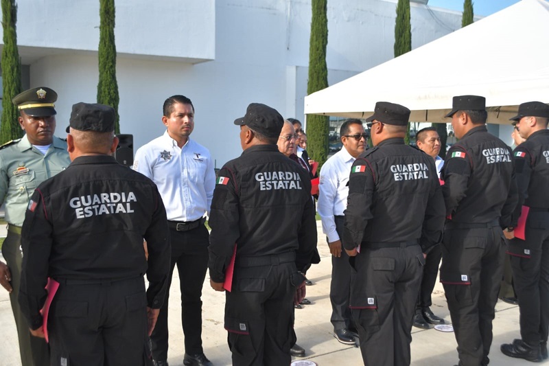 La ceremonia fue presidida por el subsecretario de Operaciones de la Guardia Estatal, Alex Melgarejo Torres, quien extendió un reconocimiento a las y los guardias estatales que tomaron esta capacitación y a los instructores, Intendente César Augusto Barrera León e Intendente Juan de Jesús Meneses Chacón.