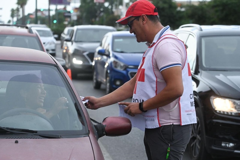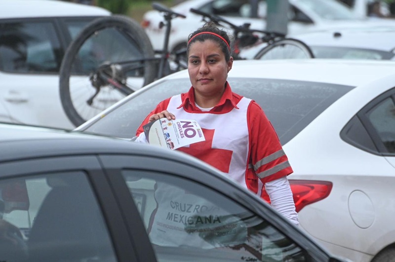 CIUDAD VICTORIA, TAMPS. Con el lema «Usa el casco y salva tu vida», personal de la Cruz Roja Mexicana se sumó a la campaña de prevención de accidentes que implementa la Dirección de Seguridad Tránsito y Vialidad Municipal con la distribución de recomendación impresa y verbal dirigida a motociclistas.