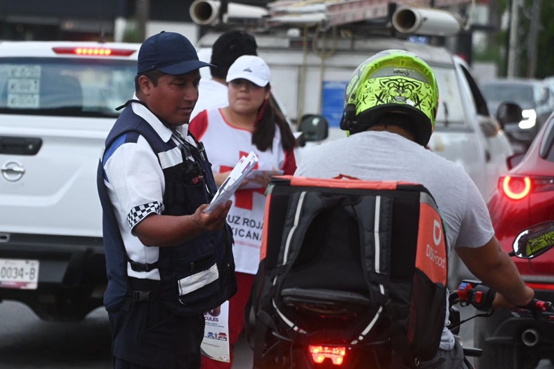 Con la distribución de trípticos y exhorto verbal, hicieron conciencia entre conductores sobre el respeto a las normas de tránsito, uso de equipo de protección, evitar el uso de celular, respetar límites de velocidad, no circular con más de dos pasajeros, no realizar maniobras prohibidas y circular entre carriles.