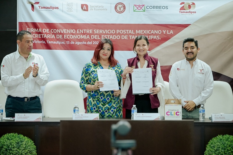 El acuerdo fue firmado por la secretaria de Economía, Ninfa Cantú Deándar y la directora regional Norte de SEPOMEX, Martha Angélica Pérez y contó con la presencia como testigo del subsecretario del Trabajo, Abelardo Flores y líderes de organismos empresariales de Tamaulipas.
