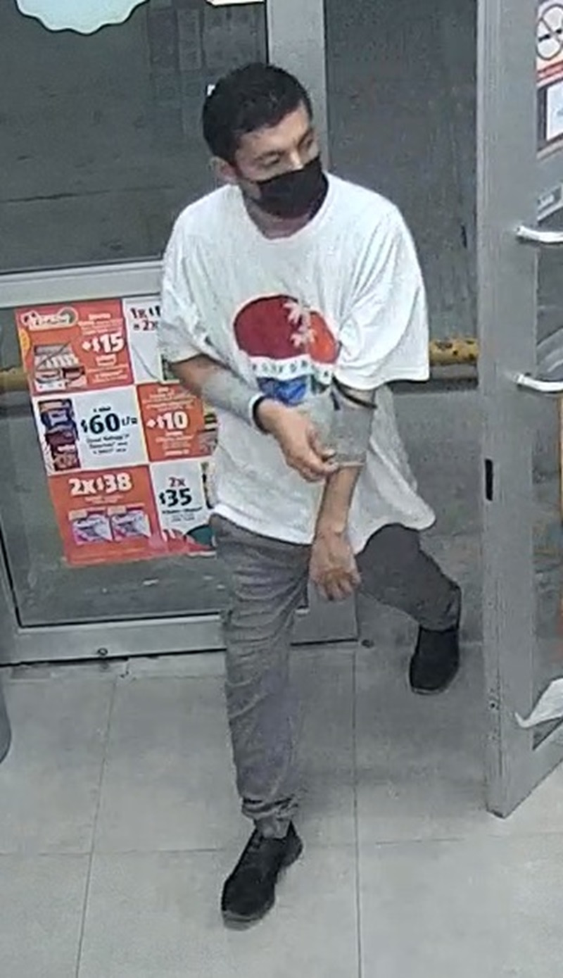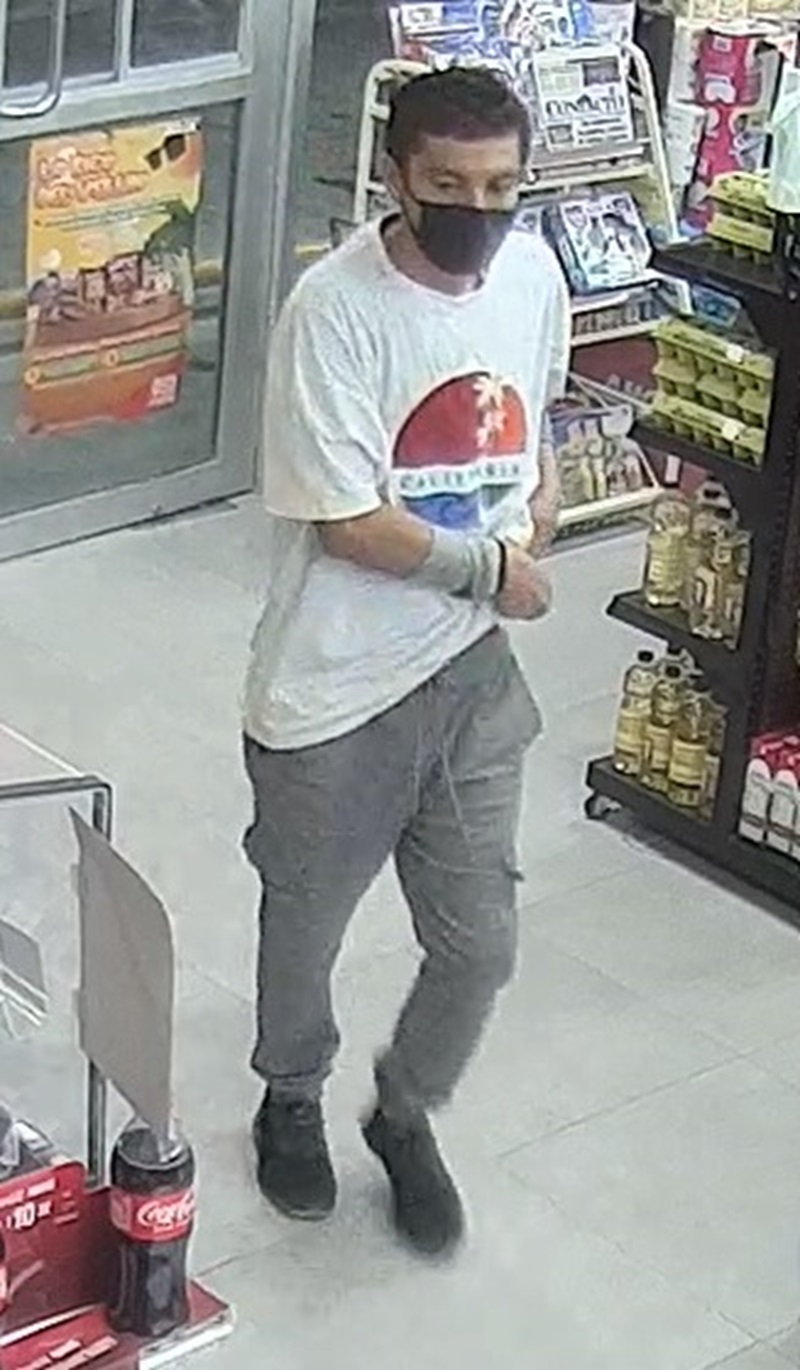 Las cámaras de vigilancia tienen la imagen de «El Mangas» por lo que la autoridad piden a quien lo vea, que lo denuncie al 911.