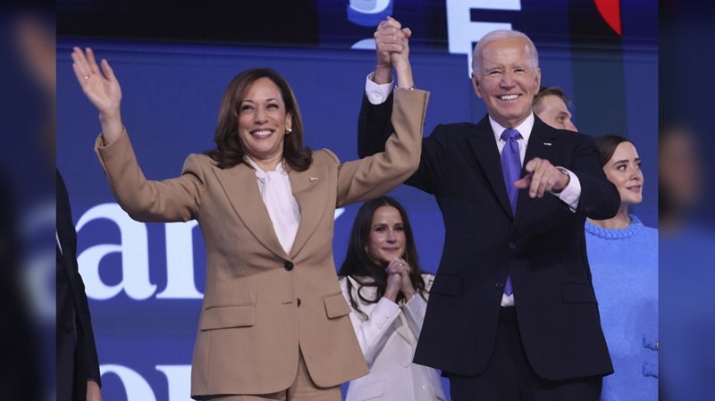Biden pasa la antorcha a Harris que aparece por sorpresa en la convención