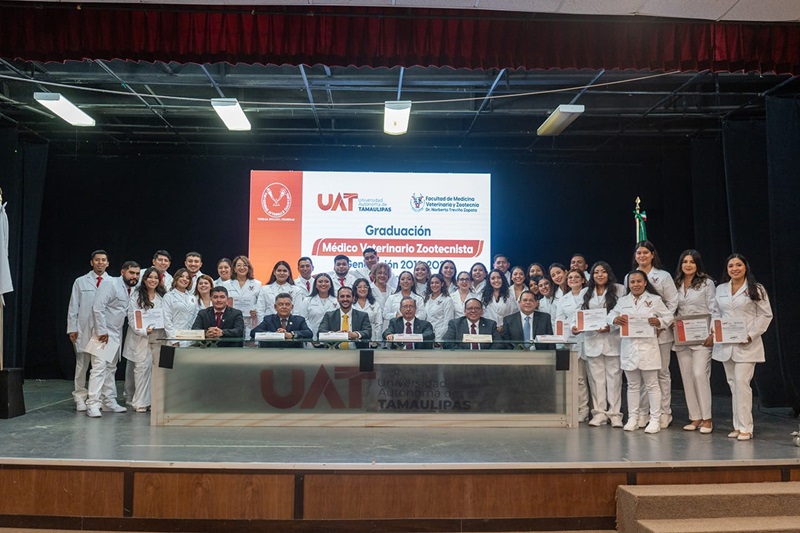 CIUDAD VICTORIA, TAMPS. La Facultad de Medicina Veterinaria y Zootecnia de la Universidad Autónoma de Tamaulipas (FMVZ-UAT) entregó una generación más de profesionales que aportarán sus conocimientos y habilidades para contribuir al desarrollo de la sociedad tamaulipeca.