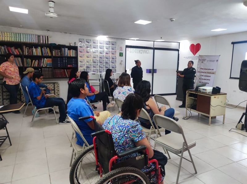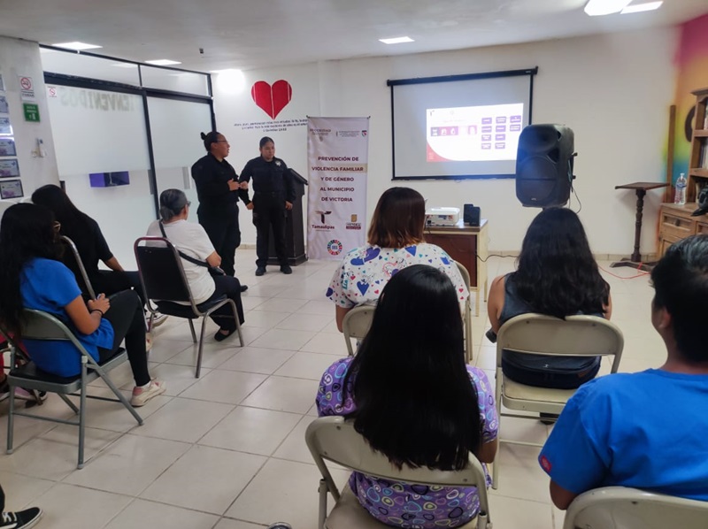 CIUDAD VICTORIA, TAMPS. Muestra del trabajo conjunto entre sociedad y gobierno para prevenir, atender y erradicar la violencia en contra de niñas, adolescentes y mujeres, personal de la Guardia Estatal de Género impartió un taller a integrantes de la asociación civil “Vive Mujer”.