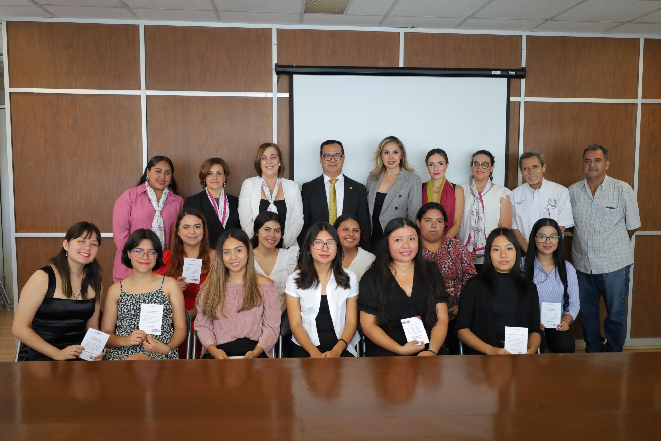 CIUDAD VICTORIA, TAMPS. En cumplimiento a la convocatoria emitida durante el mes de enero por la Asociación de Mujeres Profesionistas de Victoria, A.C., el pasado miércoles 21 de agosto del 2024, en la Sala de Directores de la Facultad de Derecho y Ciencias Sociales de Victoria, de la Universidad Autónoma de Tamaulipas, el Consejo Directivo 2024 presidido por la Maestra Gregoria Santos González, entregó las becas “Por más y Mejores Profesionistas” a las alumnas universitarias que cumplieron con los requisitos establecidos por el organismo empresarial, entre los cuales debe destacar ser estudiantes de excelencia.