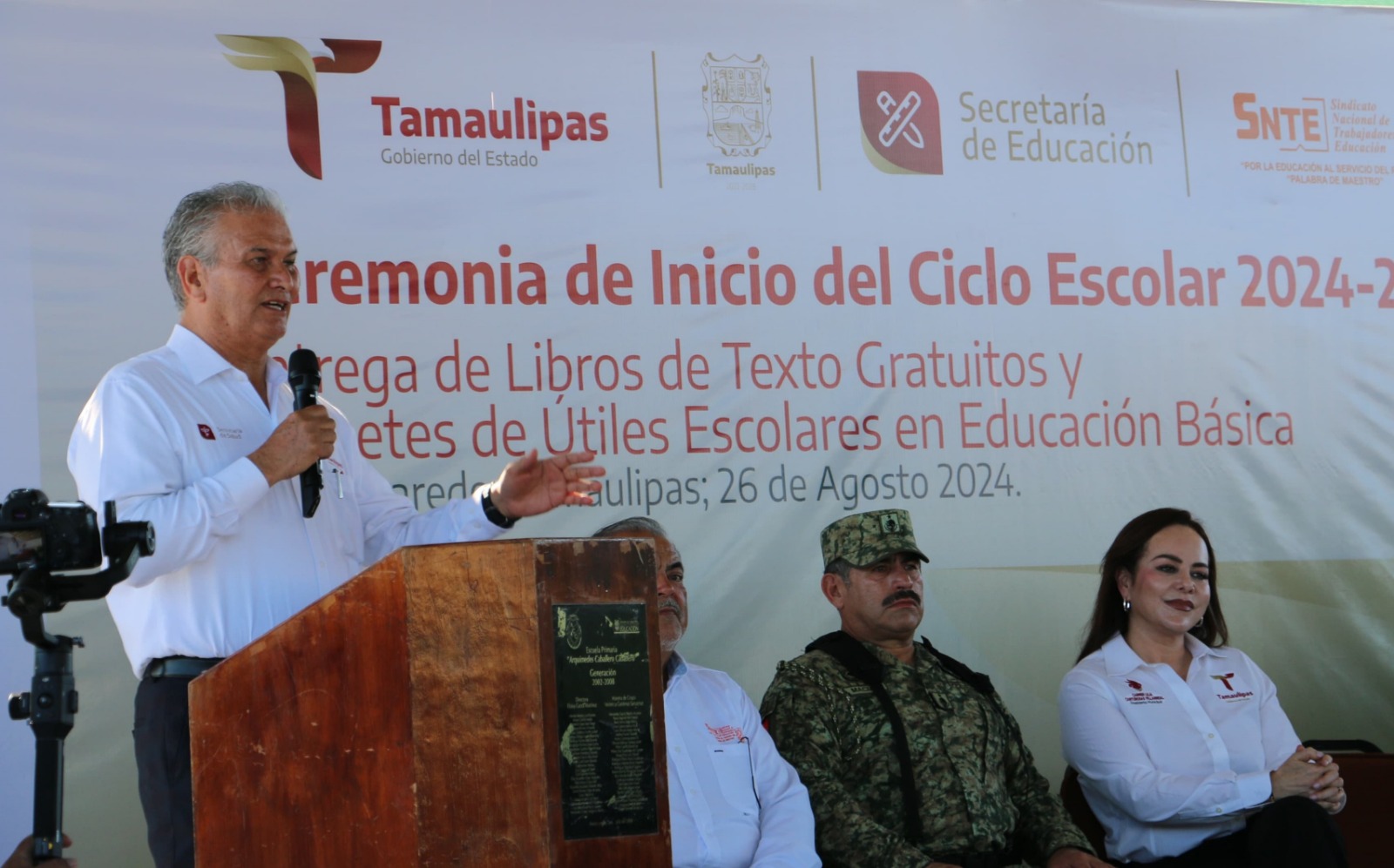 “El Gobierno de la Transformación ha hecho de Tamaulipas un estado humanista, que se preocupa por el bienestar de sus niñas, niños y adolescentes, y para apoyar en la economía familiar, destinó más de 340 millones de pesos para otorgar lo necesario a los estudiantes como paquetes de útiles escolares y uniformes de manera gratuita para este nuevo ciclo escolar”, destacó Hernández Navarro durante su discurso.