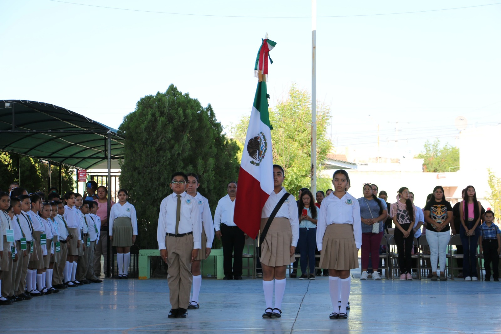 En la inauguración se contó con la presencia del representante de la secretaria de Educación, Lucía Aimé Castillo Pastor, el titular del Centro Regional de Desarrollo Educativo de Nuevo Laredo, César Bolaños Hernández; el general brigadier DEM José Antonio Hernández Macías, comandante de la guarnición militar de Nuevo Laredo; del coordinador de la Zona No. 1 del SNTE, Jaime Mendoza Vega; el director de la Escuela Primaria Arquímedes Caballero Caballero, Juan Manuel Arriaga Hernández, así como Oralia Patricia López Castillo, representante de la Asociación de Padres de Familia, la comunidad estudiantil y personal docente.