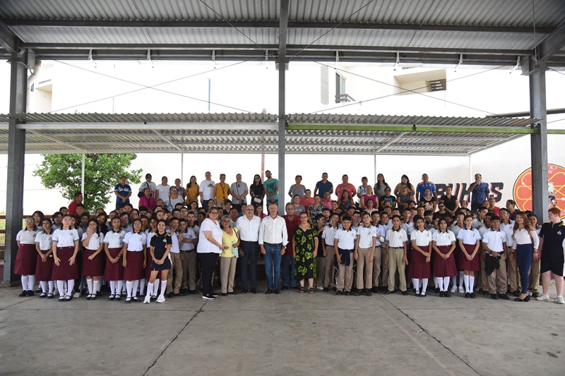 Entrega Chucho Nader techumbre y gradas en la Secundaria “Medina Cedillo”