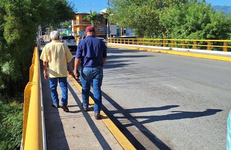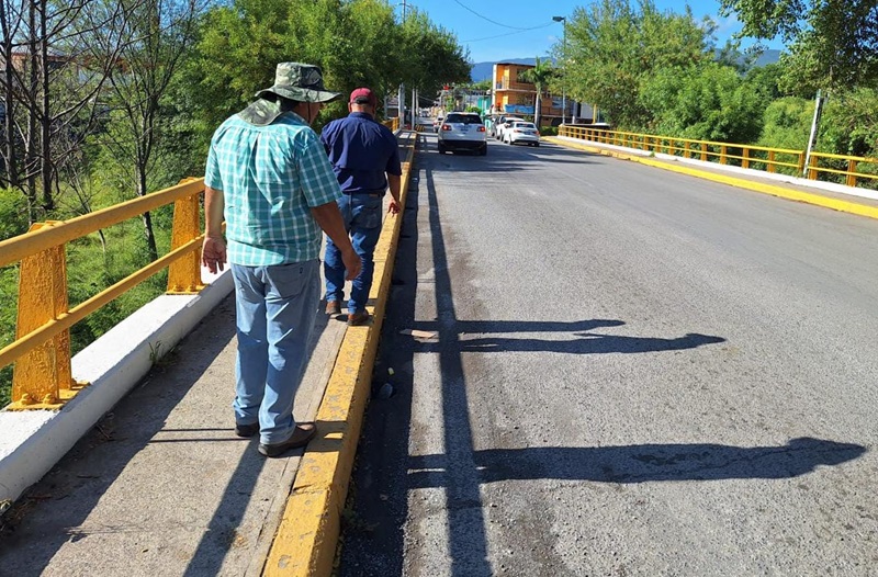 CIUDAD VICTORIA, TAMPS. Para protección de peatones y automovilistas, personal de la Secretaría de Obras Públicas del Municipio verificó esta mañana la estructura de losa y barandal de los puentes viales que conectan los boulevares boulevard Praxedis Balboa y José López Portillo.