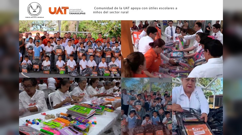 CIUDAD VICTORIA, TAMPS. La Universidad Autónoma de Tamaulipas (UAT) continúa con la entrega de útiles escolares en apoyo a estudiantes en situación vulnerable de las diferentes comunidades de la entidad, mediante la participación de sus dependencias académicas y administrativas.