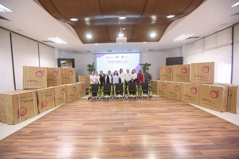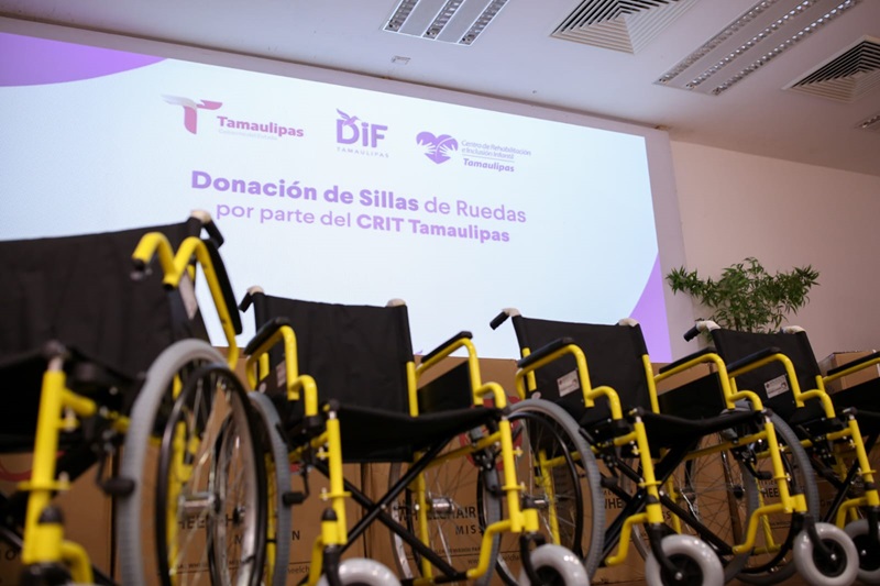 CIUDAD VICTORIA, TAMPS. El Centro de Rehabilitación e Inclusión Infantil Teletón de Tamaulipas (CRIT), llevó a cabo un donativo consistente en 59 sillas de ruedas al Sistema para el Desarrollo Integral de la Familia de Tamaulipas que preside la doctora María de Villarreal, que serán de gran utilidad para las personas que más las requieran y que se encuentren con algún grado de vulnerabilidad.